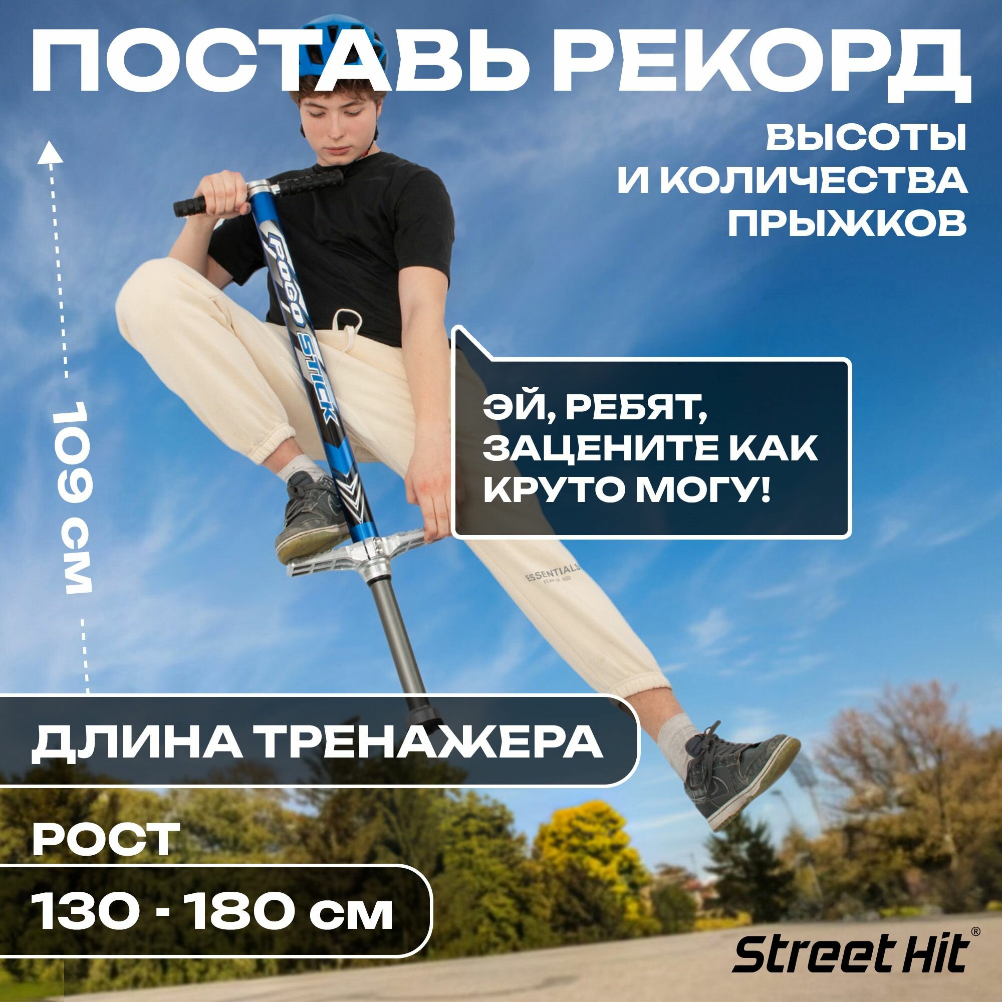 Тренажер кузнечик Pogo Stick PRO 50-70 кг "Street Hit" Синий информация: