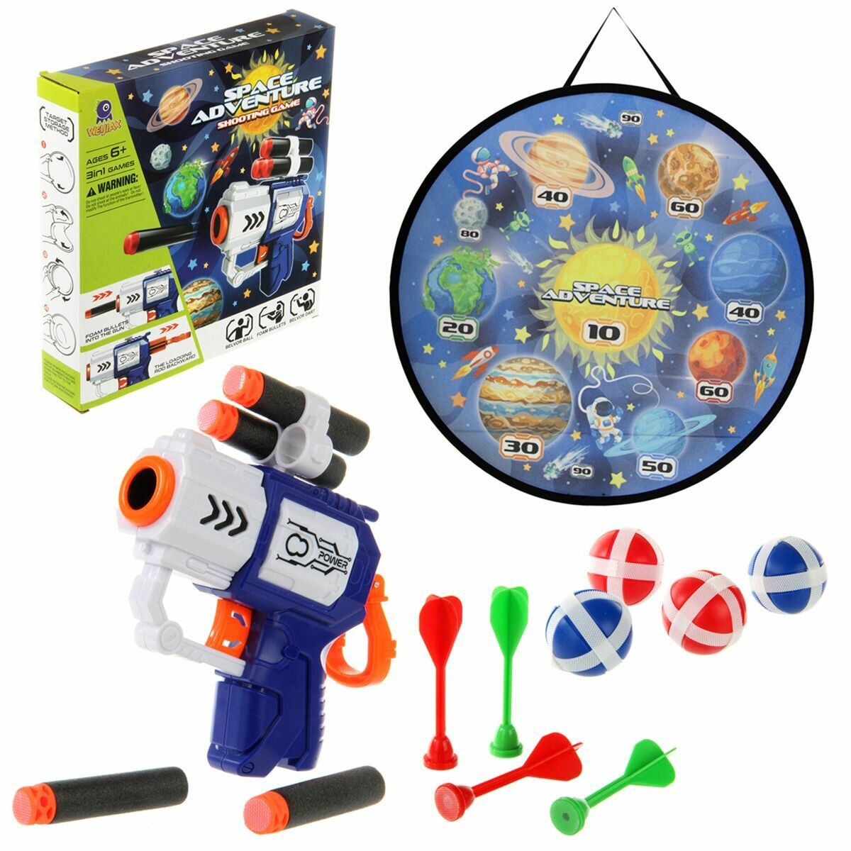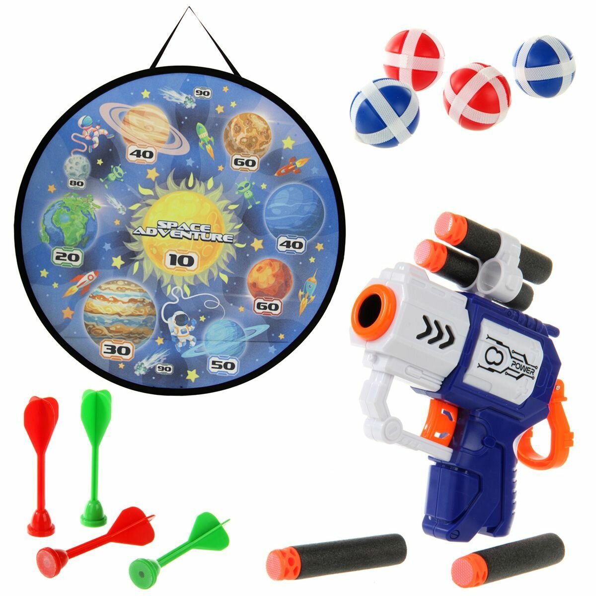 Набор для игры в дартс с пистолетом, дротиками, шариками и мишенью, Veld Co информация: