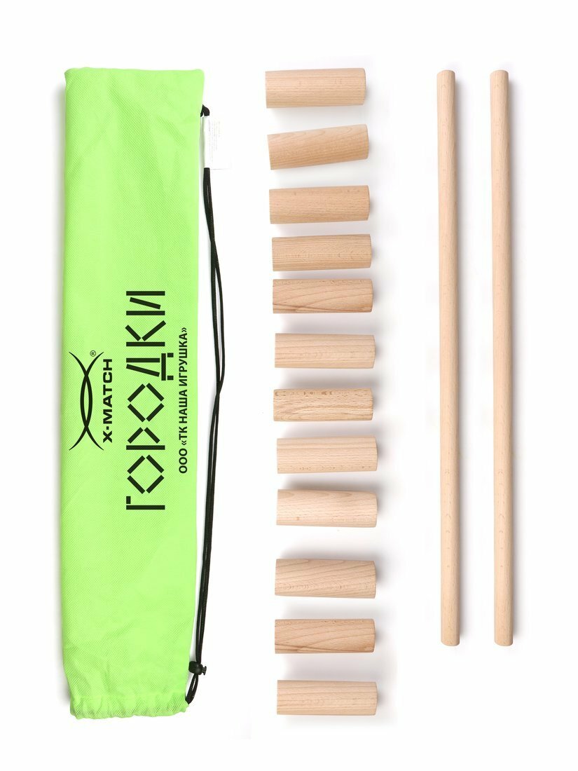 Городки детские ТМ «Х-Match» в комплекте: биты 2- шт. рюхи 12 шт. мешок. 77777НИ информация:
