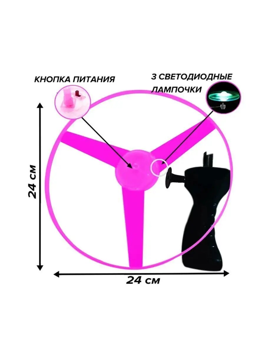 Отзывы на Летающая вертушка СмеХторг, пластик, ручная, с LED-освещением, малиново-красная