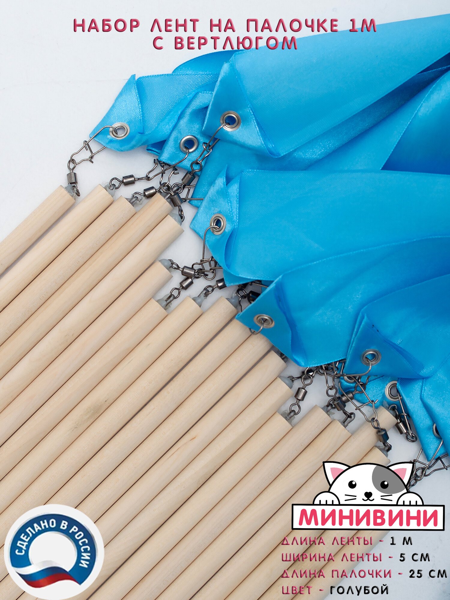 Набор Лента атласная на палочке с вертлюжным креплением (1 м) голубая минивини информация: