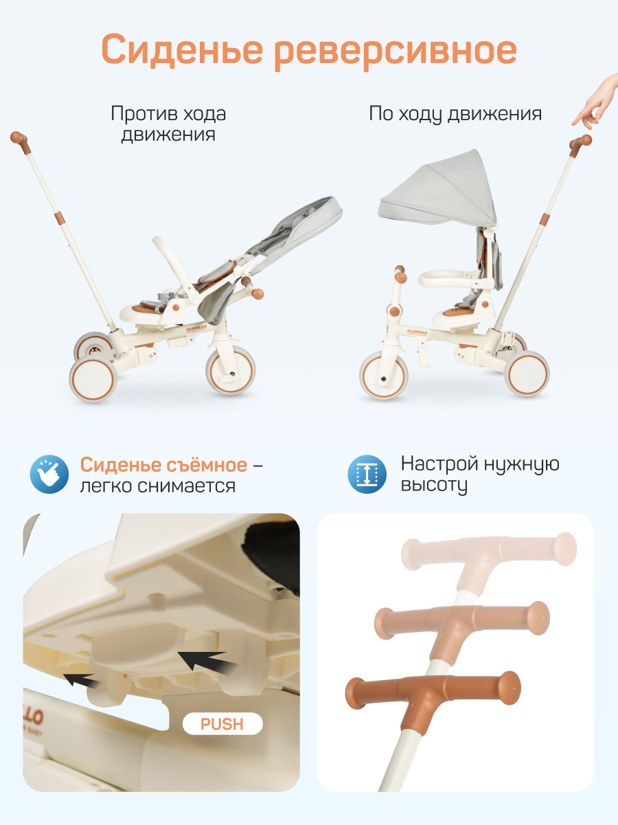 Велосипед трехколесный Farfello 6699, 1-5 лет, управление для родителей, цвет Сафари