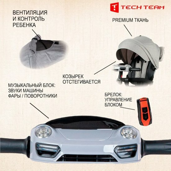 Трехколесный велосипед TechTeam Трехколесный велосипед с ручкой TechTeam Luxury 2023, бежевый