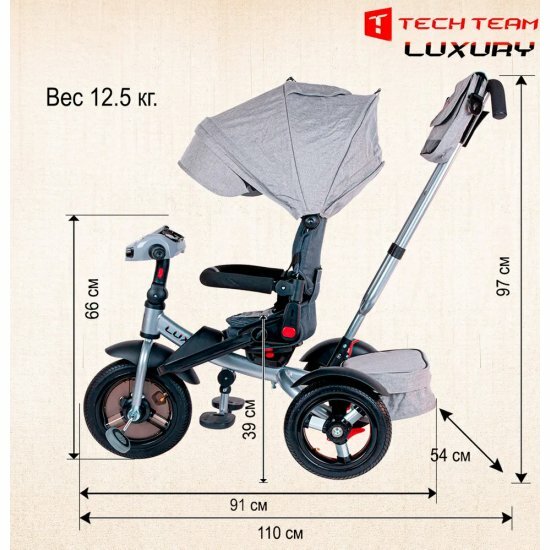 Детский трехколесный велосипед Tech Team с ручкой Luxury серый 1/1 информация: