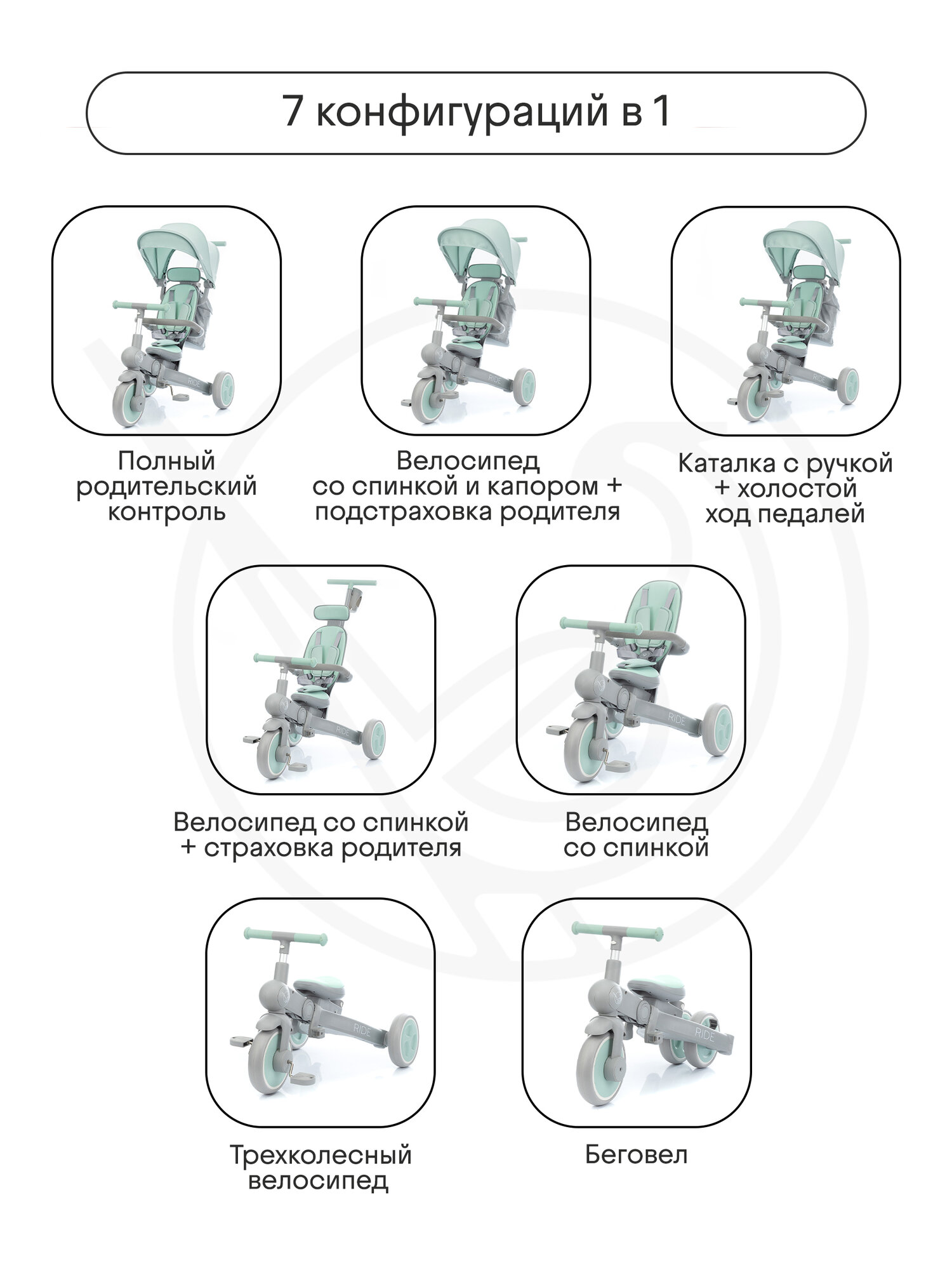 Отзывы на Велосипед детский трехколесный с ручкой Kidzi Ride, аксессуары в комплекте, складной, мятный/серый