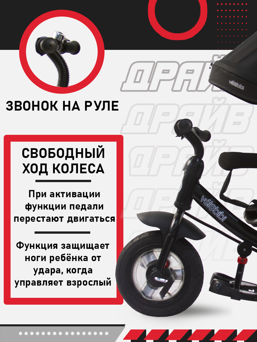 Отзывы на Велосипед-трансформер трёхколёсный с ручкой ДРАЙВ (колеса надувные 10"/8", корзина), черный