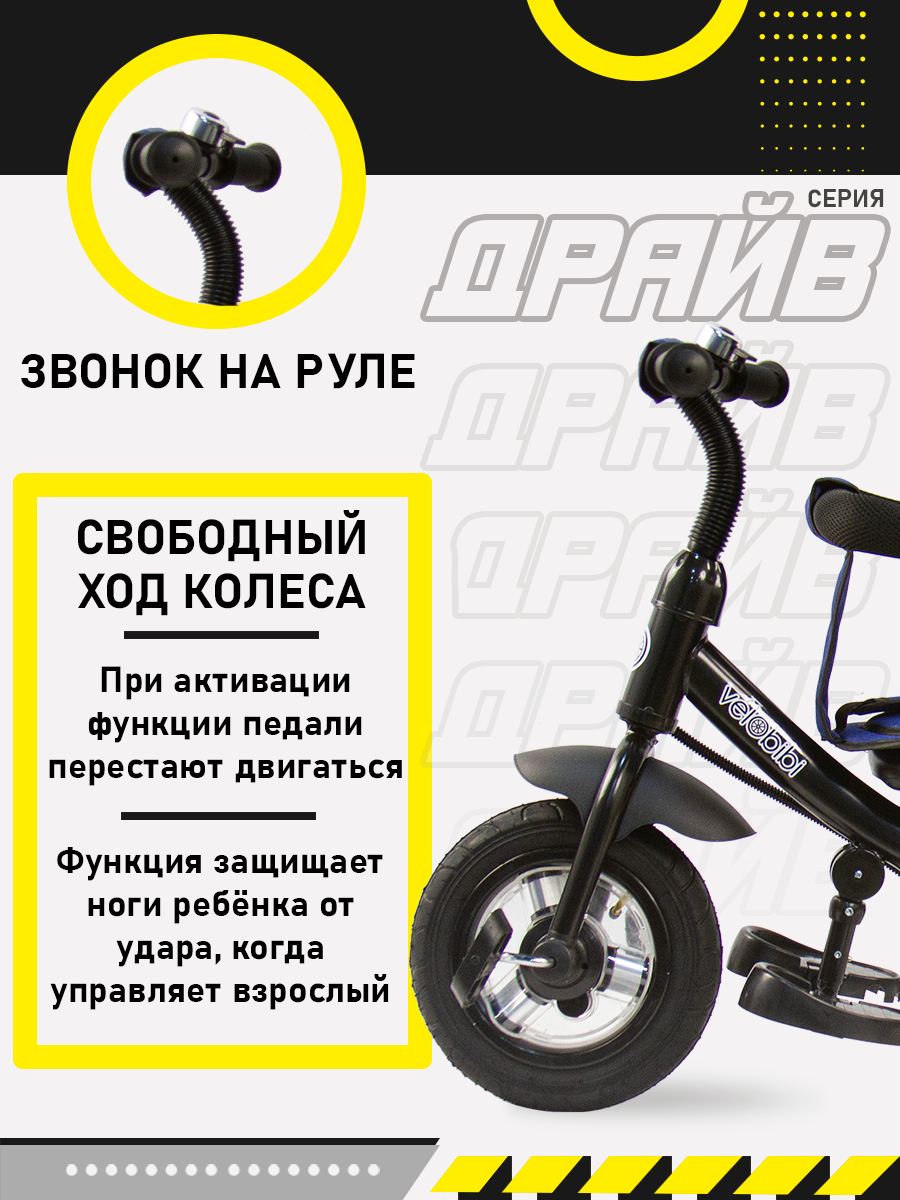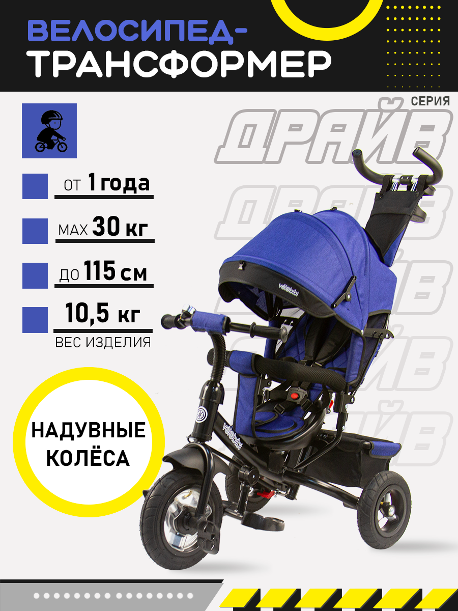 Отзывы на Велосипед-трансформер трёхколёсный с ручкой ДРАЙВ (колеса надувные 10"/8", корзина), синий