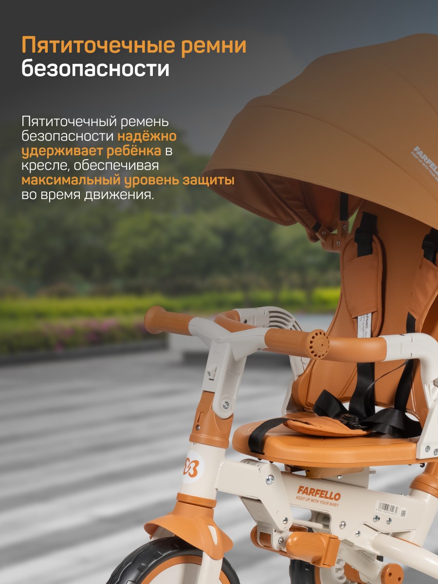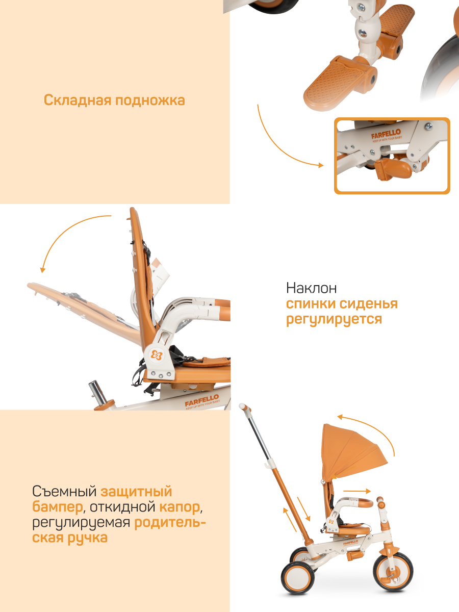 Отзывы на Велосипед трехколесный Farfello 6699, 1-5 лет, управление для родителей, цвет Сафари