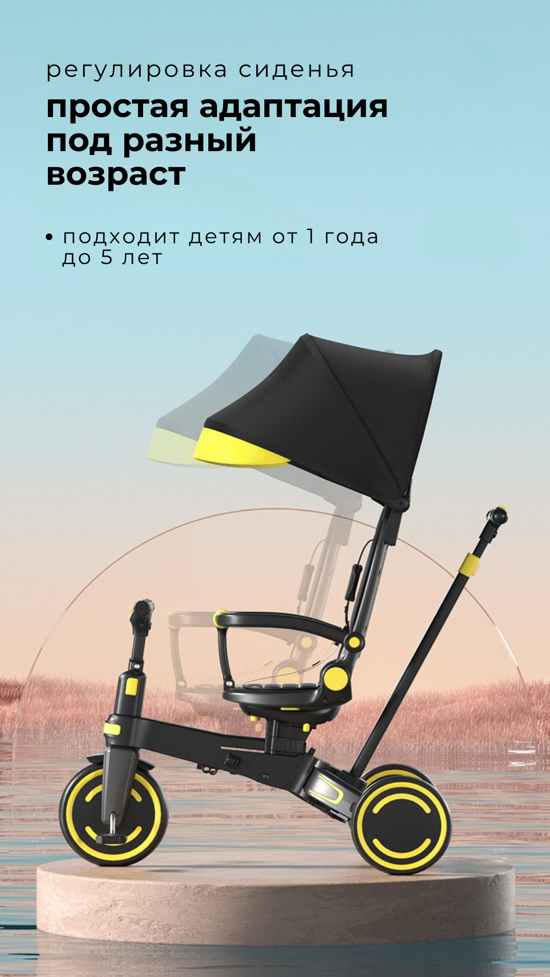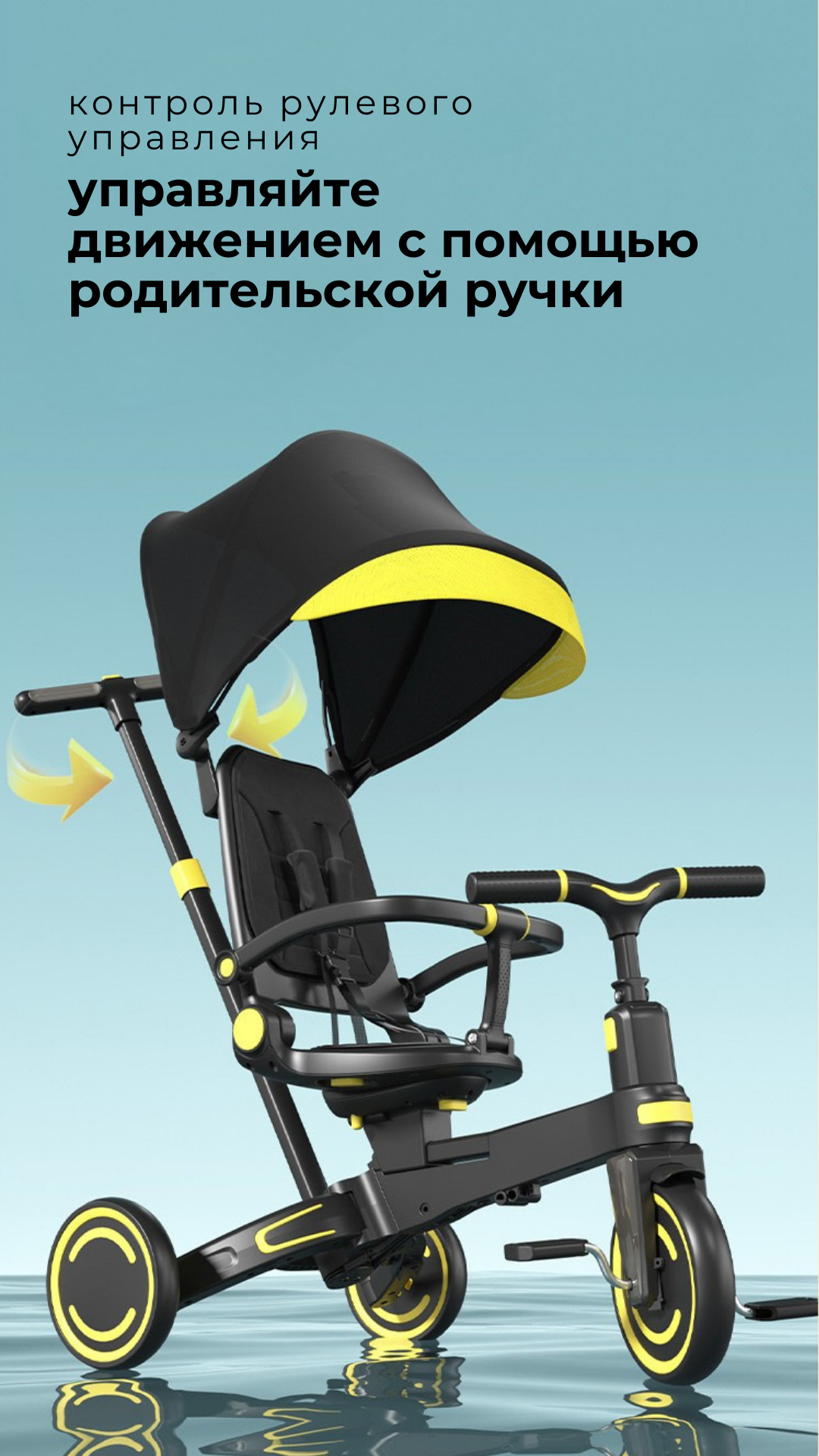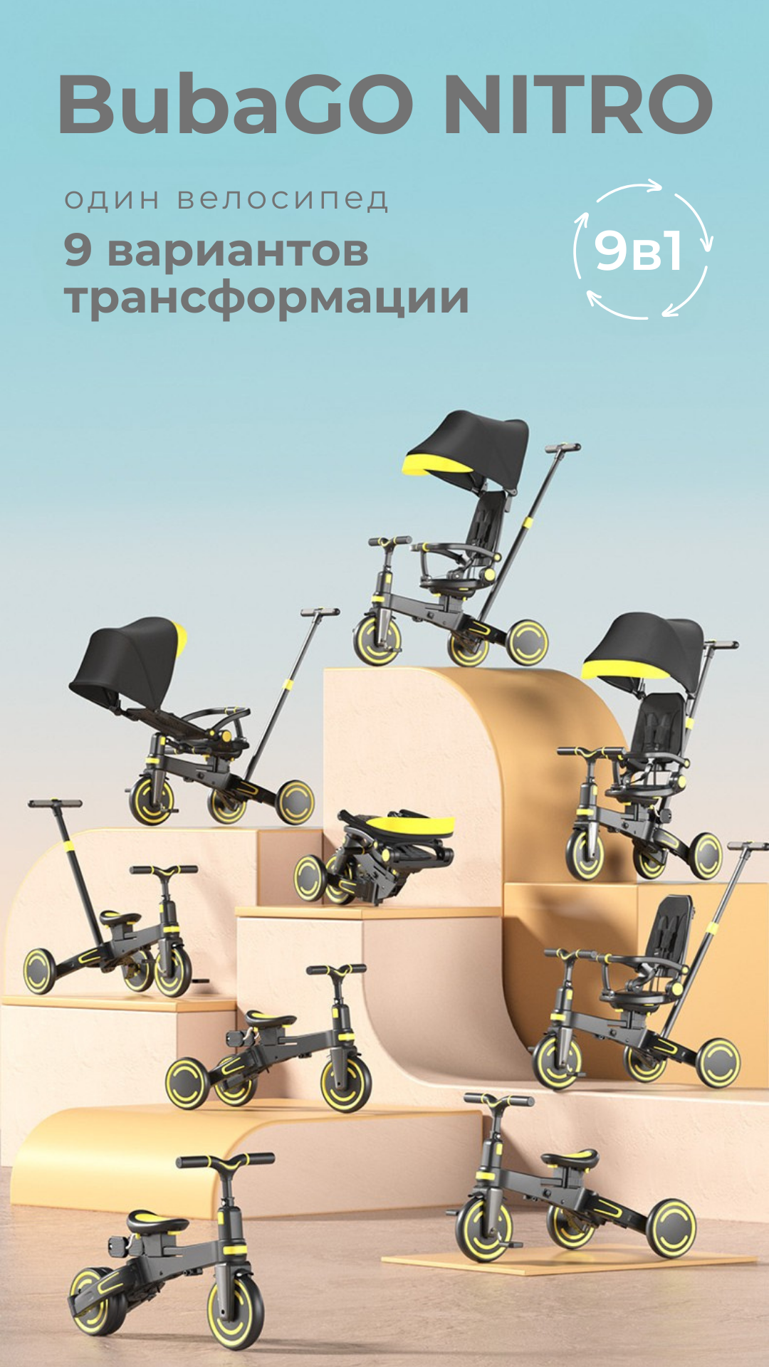 Отзывы на Детский складной трехколесный велосипед трасформер 9 в 1с родительской ручкой NITRO BubaGo желтый/черный