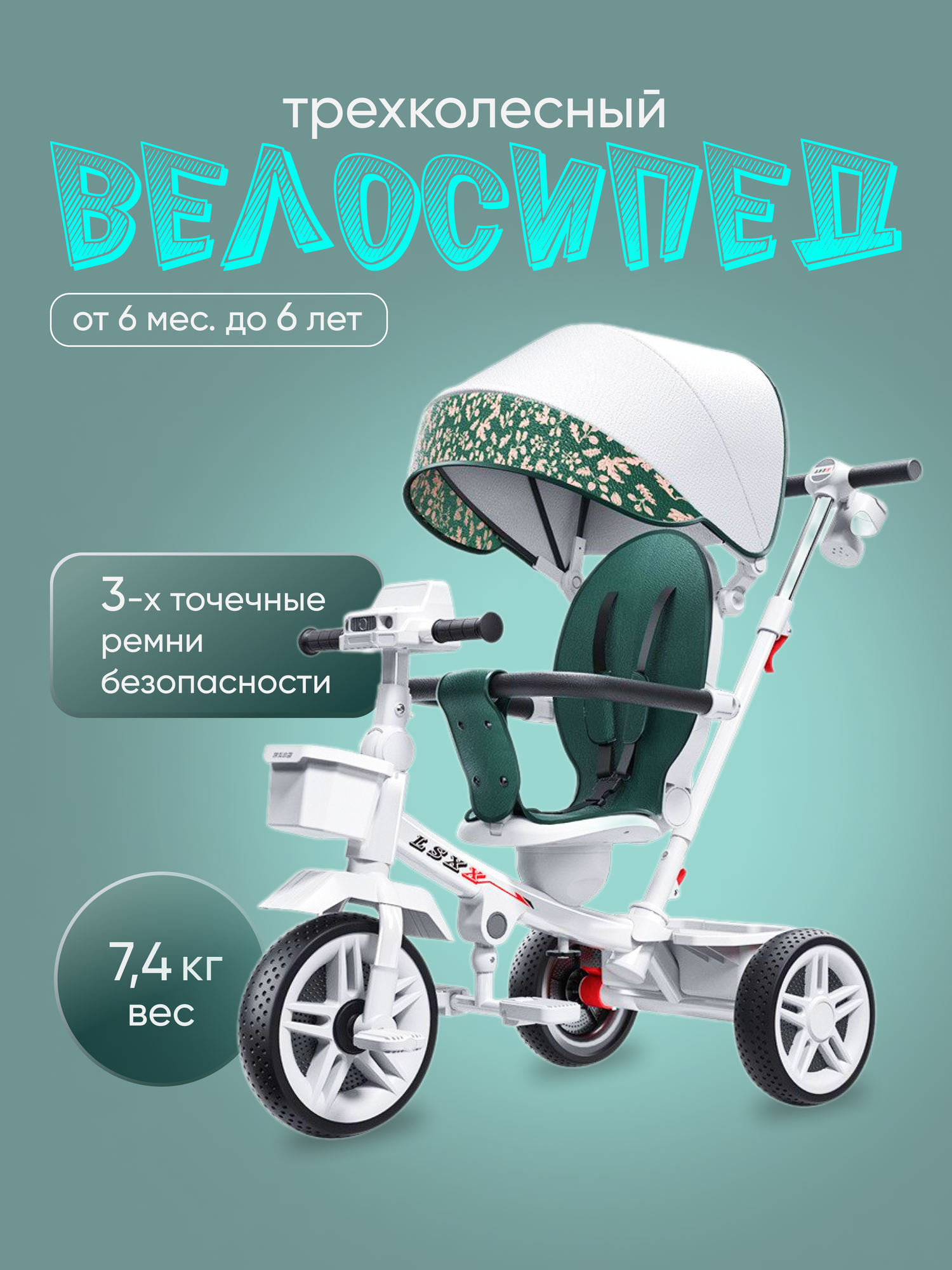 Отзывы на Велосипед детский с ручкой LSXX PREMIUM CL- 869, бело-зеленый, с поворотным сиденьем