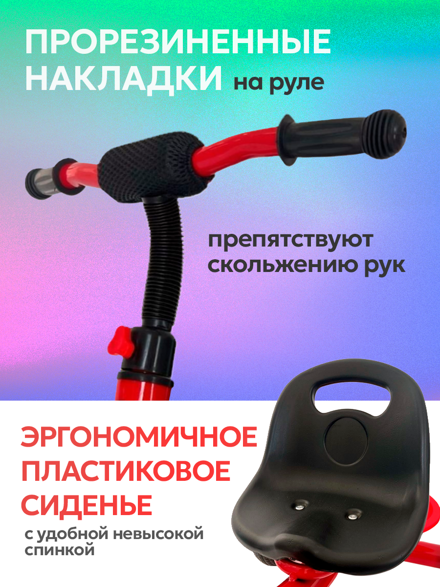 Велосипед-трансформер трёхколесный с ручкой АКТИВ (колеса 12"/10", поворотное сиденье), красный