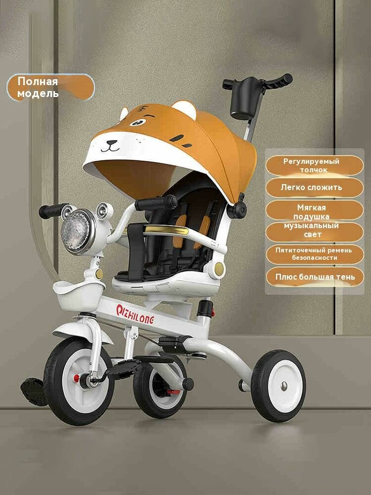 Трехколесный велосипед для детей, складной, с козырьком, с ремнем безопасности, 1-6 лет