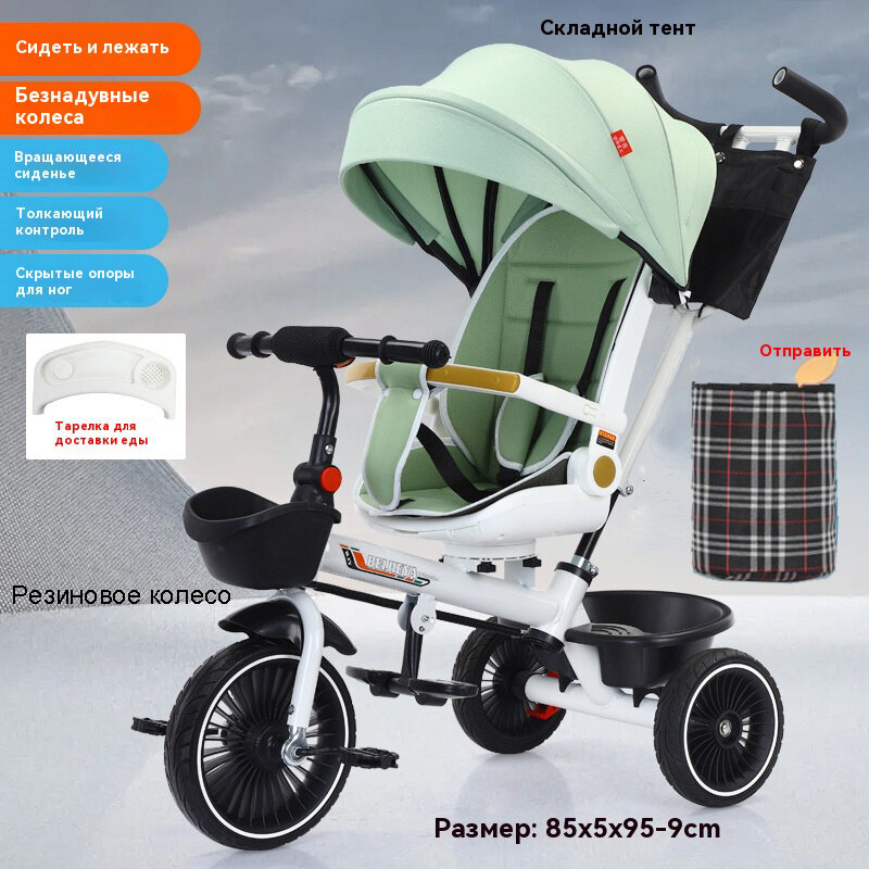 Велосипед-коляска трехколесный "Baby", складной, для детей 1-6 лет, светло-зеленый