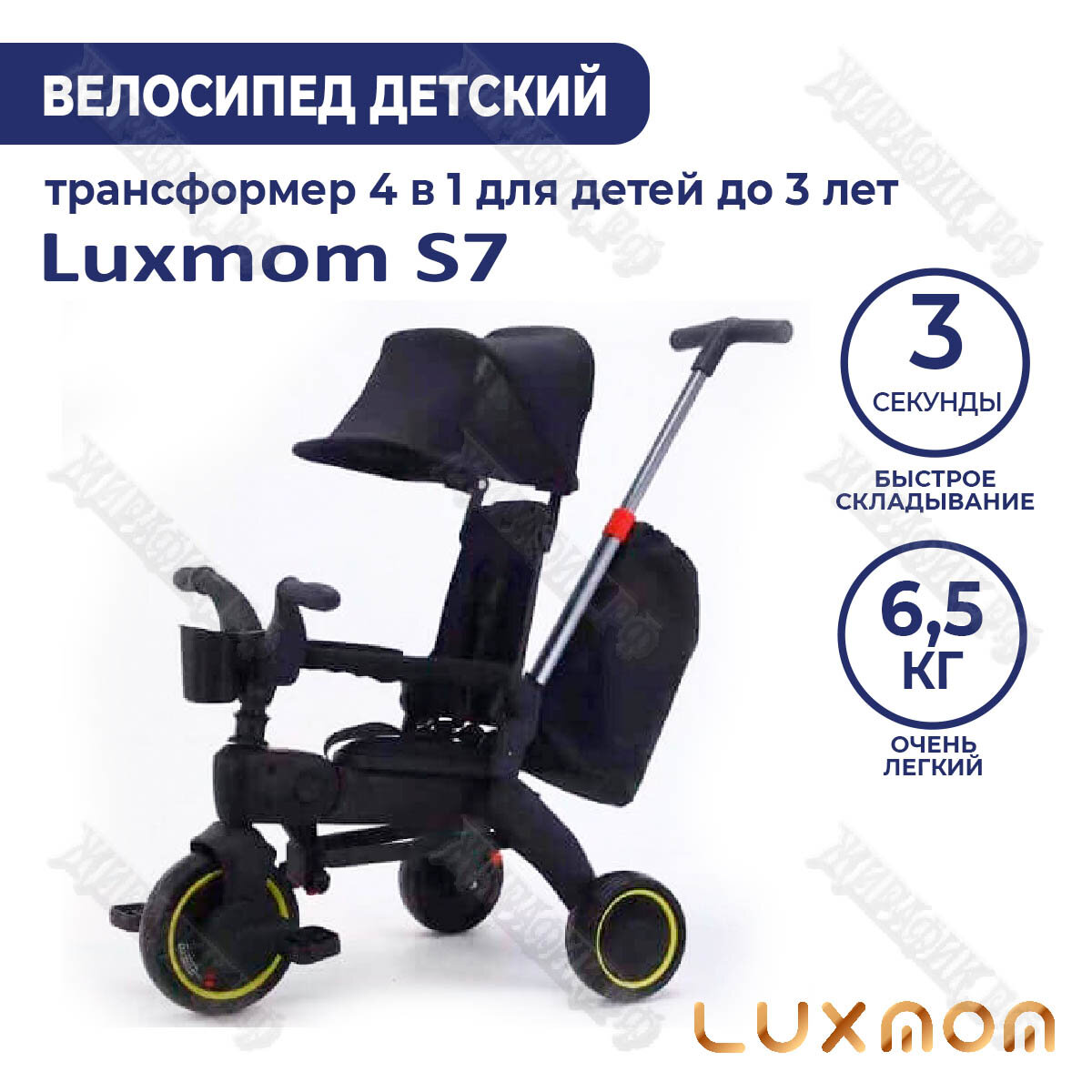 Велосипед трехколёсный Luxmom S7 складной (Черный) информация: