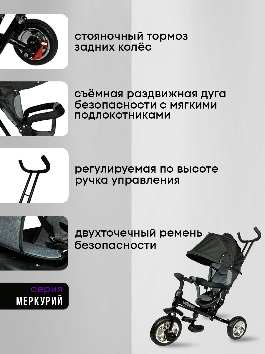 Велосипед-трансформер "Меркурий" трёхколесный с ручкой, нагрузка до 30 кг, для детей от 1+, черный информация: