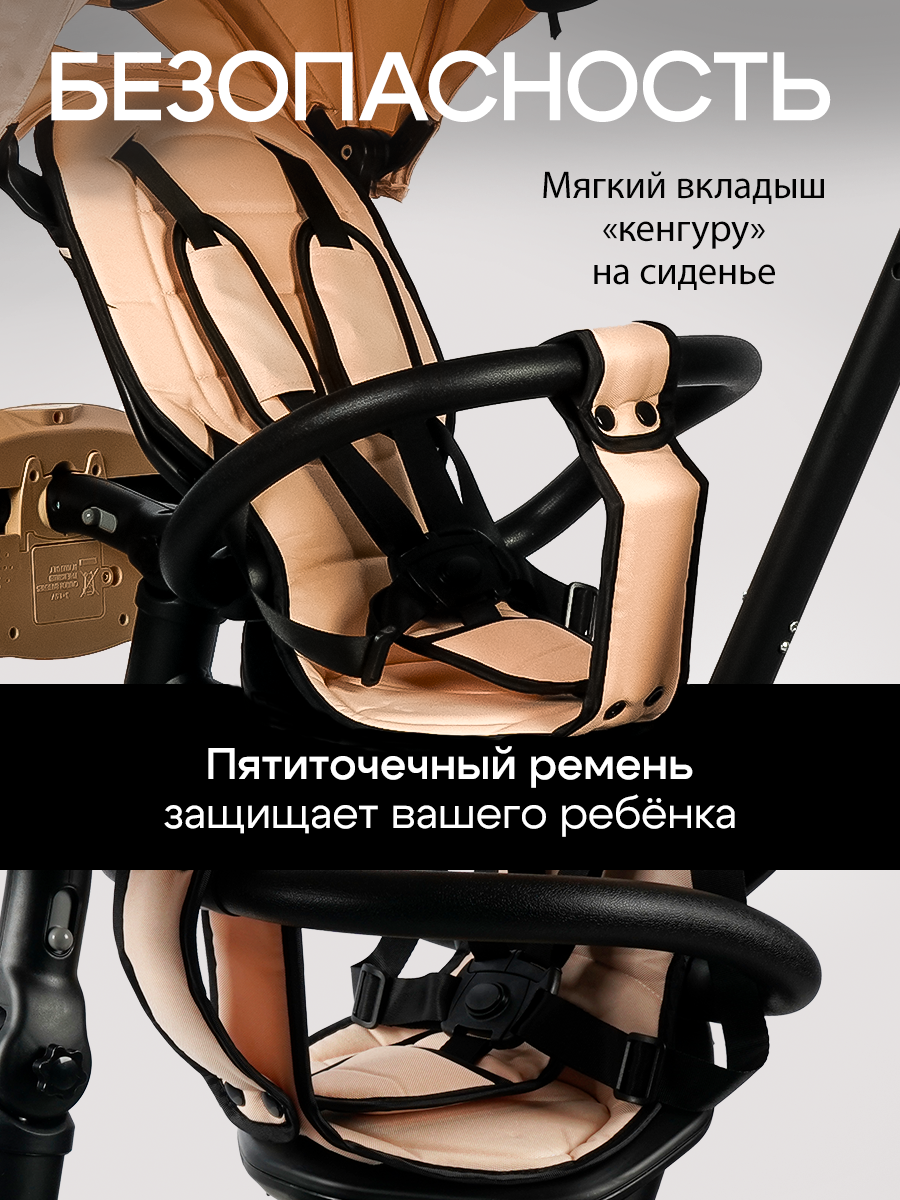 Велосипед трёхколёсный с ручкой ПРАЙМ PLUS, резиновые колеса, музыкальный модуль, бежевый информация: