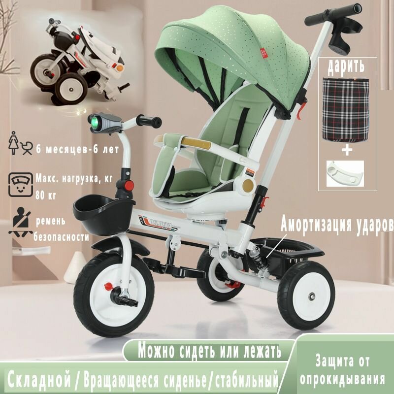 Трехколесный велосипед для детей, складной, с козырьком, с ремнем безопасности, 1-6 лет