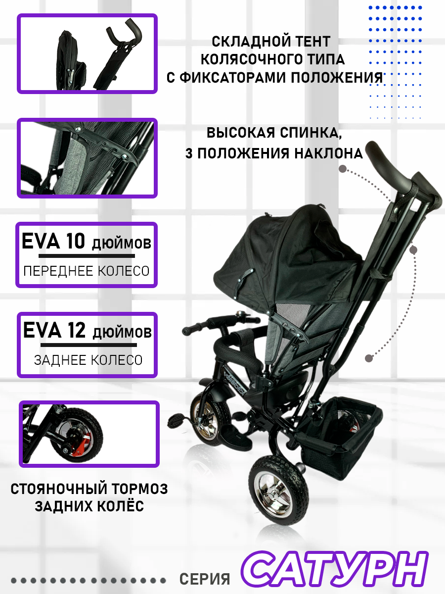 Отзывы на Велосипед-трансформер "Сатурн" трёхколесный с ручкой, нагрузка до 30 кг, для детей от 1+, черный