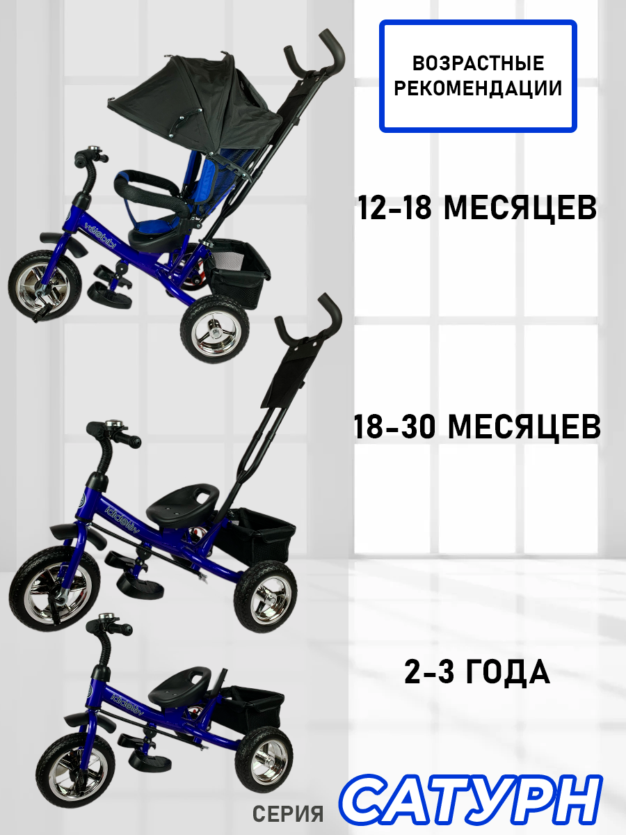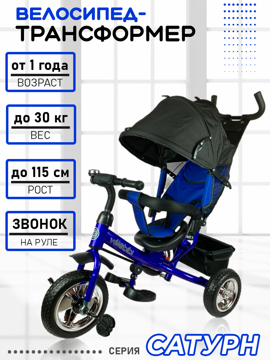 Велосипед-трансформер "Сатурн" трёхколесный с ручкой, нагрузка до 30 кг, для детей от 1+, синий информация: