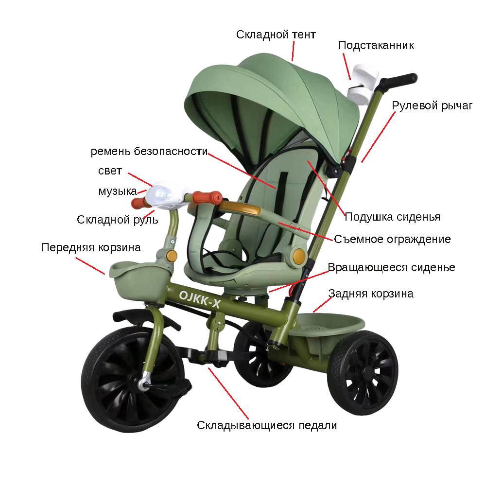 Отзывы на Детский велосипед с родительским управлением, трехколесный, стальной, зеленый
