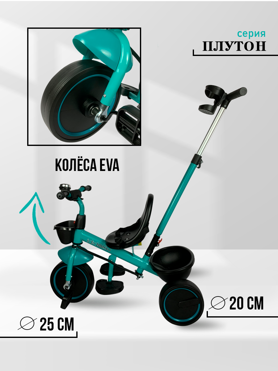 Велосипед-трансформер "Плутон" трёхколесный с ручкой, нагрузка до 30 кг, для детей от 1+, бирюза информация: