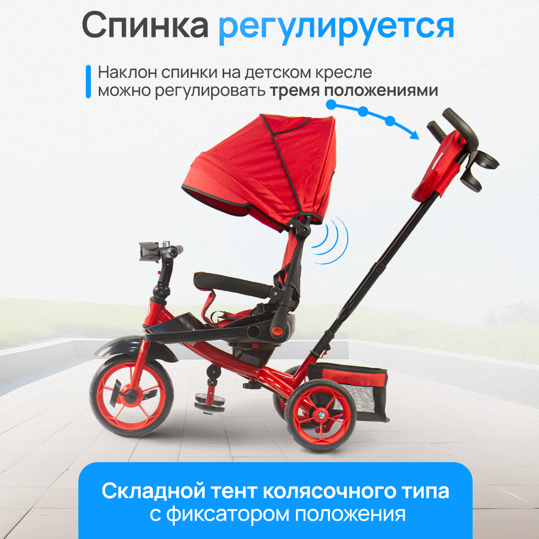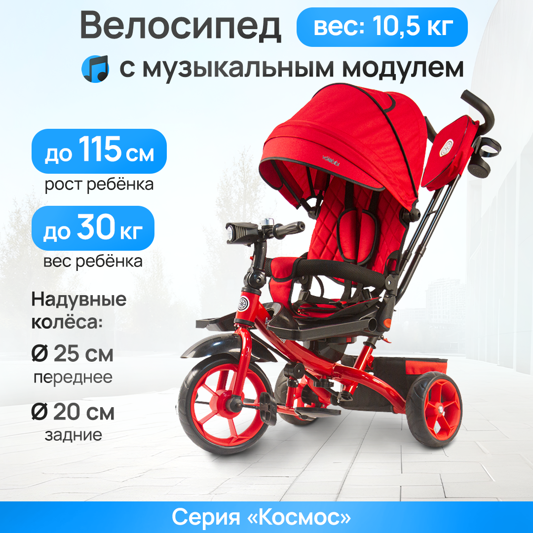 Велосипед трёхколесный с ручкой КОСМОС (колеса EVA 10"/8", поворотное сиденье), красный информация: