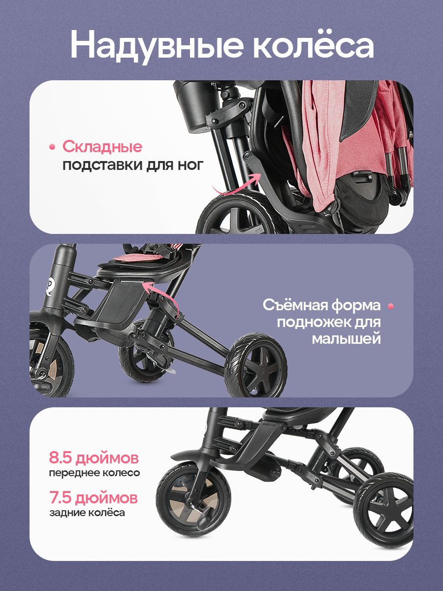 Отзывы на Велосипед трёхколёсный с ручкой NOVA (колёса 8.5"/7.5", складной), розовый