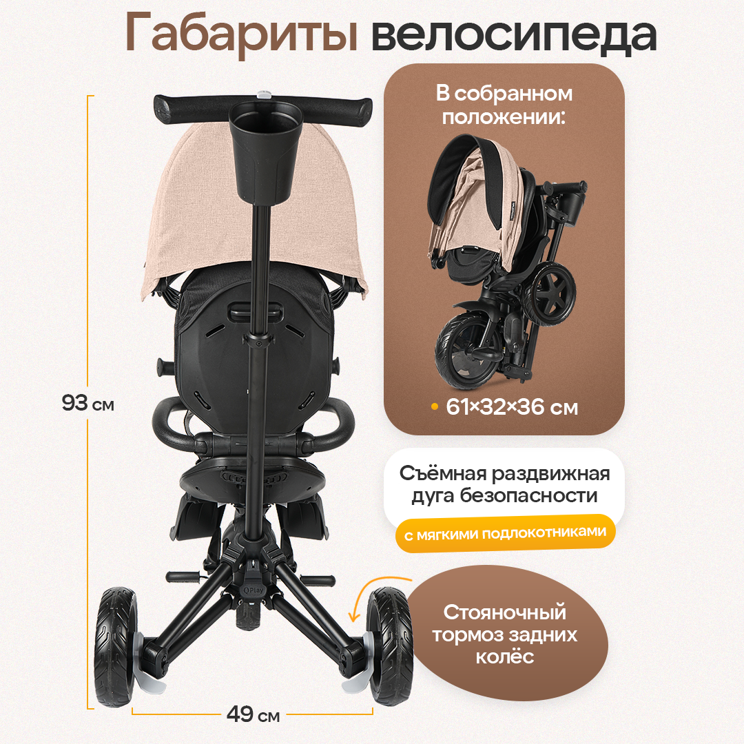 Велосипед трёхколесный с ручкой NOVA (колеса 8.5"/7.5" складной), бежевый информация: