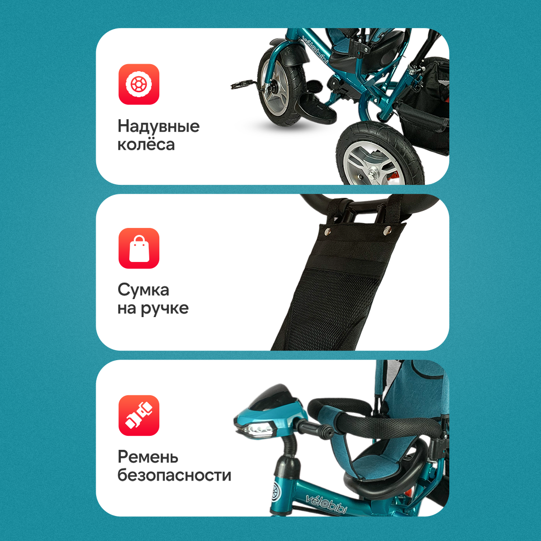 Велосипед трёхколесный "Юпитер" (колеса EVA 10"/8") бирюзовый