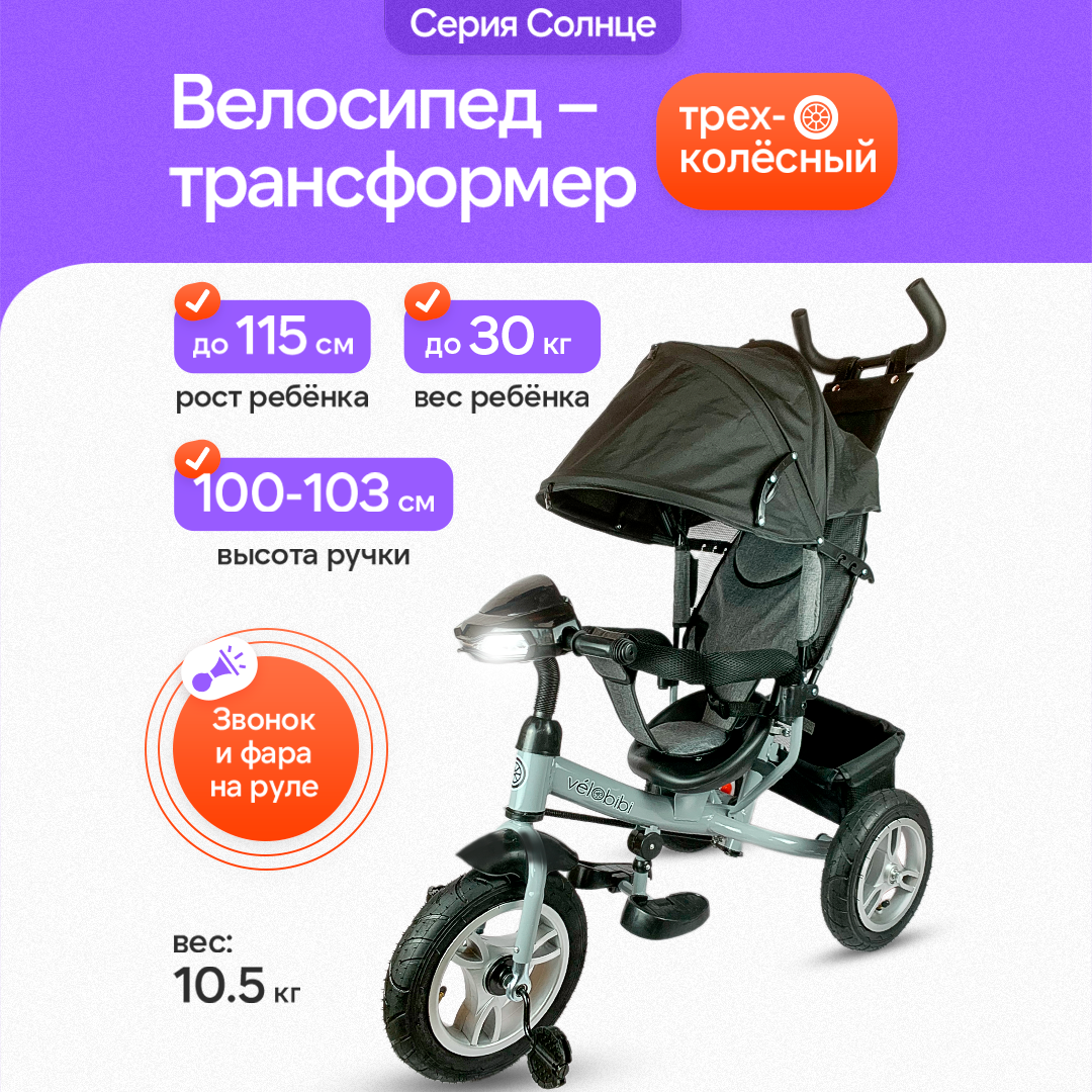 Отзывы на Велосипед-трансформер 3в1 трёхколесный с ручкой "Солнце" нагрузка до 30 кг, для детей от 1+, цвет серый