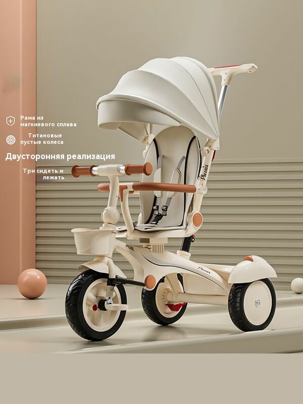 10 цен на Детский трехколесный велосипед FH001, 3 колеса, с корзиной, до 6 лет, бежевый цвет