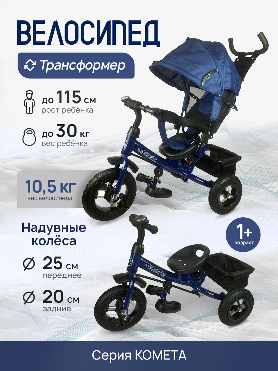 Отзывы на Велосипед-трансформер "Комета" трёхколесный с ручкой, нагрузка до 30 кг, для детей от 1+, синий