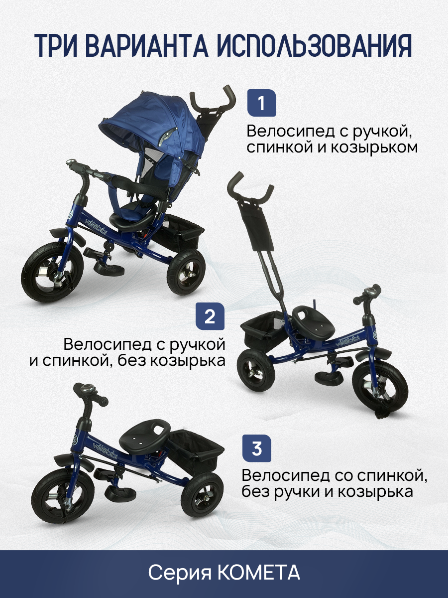 Велосипед-трансформер "Комета" трёхколесный с ручкой, нагрузка до 30 кг, для детей от 1+, синий информация: