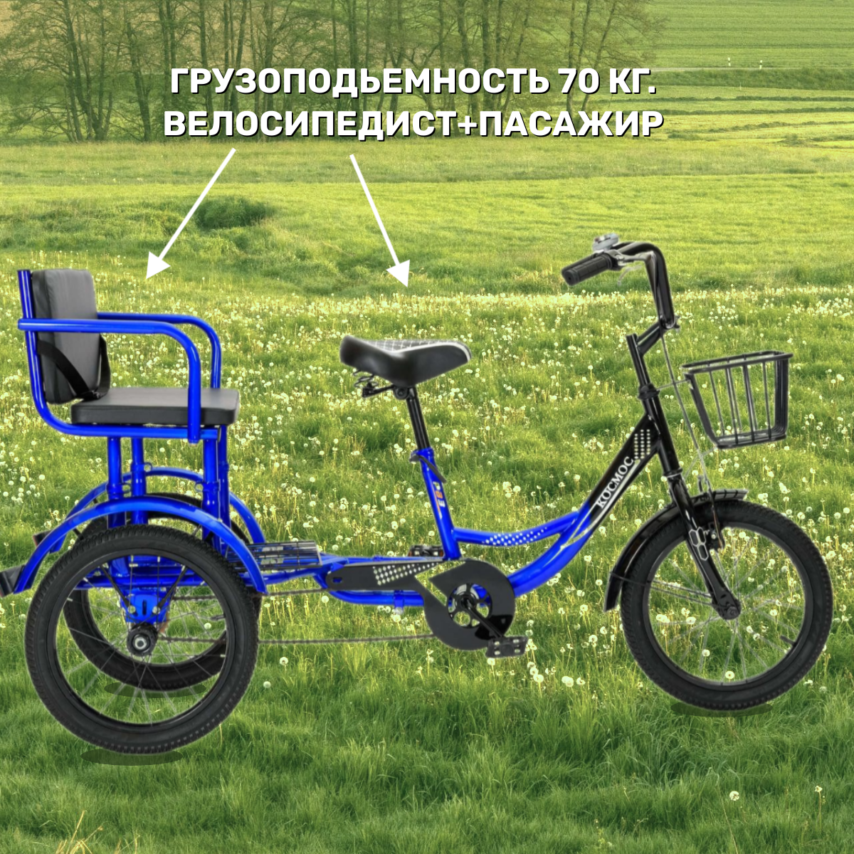 Велосипед детский двухместный трехколесный РВЗ Космос для детей 4–12 лет синий информация: