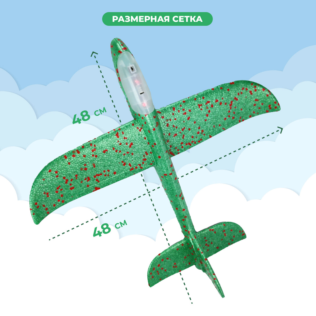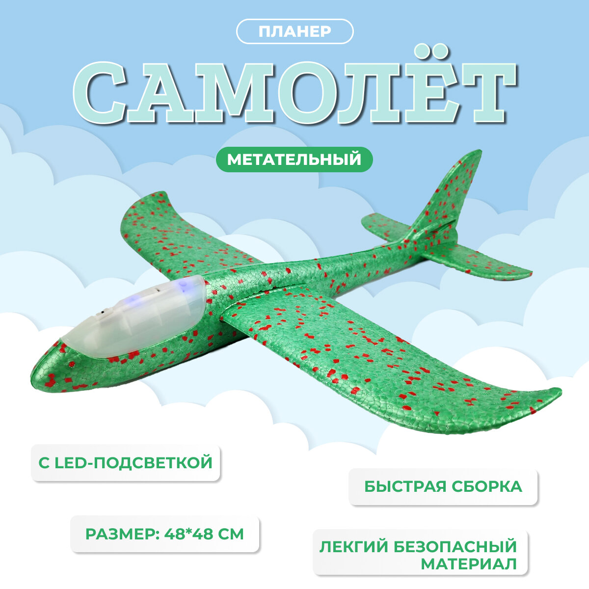 Самолет // Метательный планер // пенопластовый планер // ручной самолет с LED подсветкой зеленый в пак. информация: