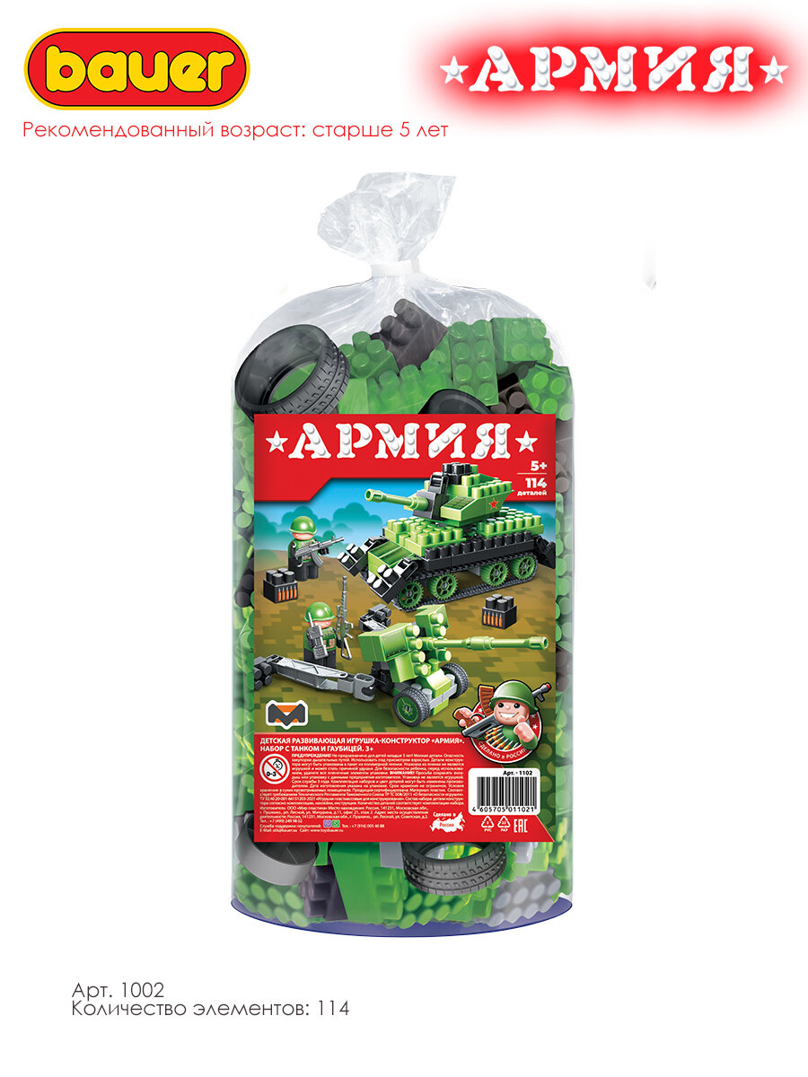 Развивающий конструктор Bauer "Армия", для детей от 3-х лет, 114 деталей информация: