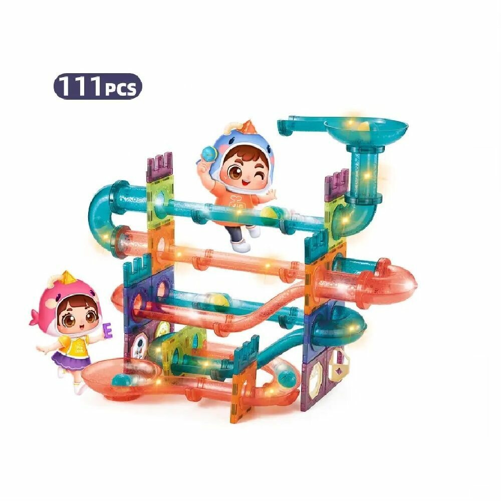 Отзывы на Игрушка большой светящийся магнитный конструктор для детей, 111 деталей, 4 светодиодные ленты, 8 шариков