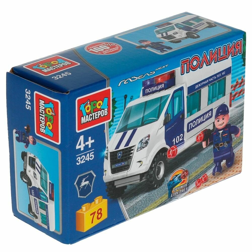 Конструктор пластиковый Полиция: ГАЗель Next для мальчика, 78 деталей, 1 фигурка полицейского, пистолет стреляет информация: