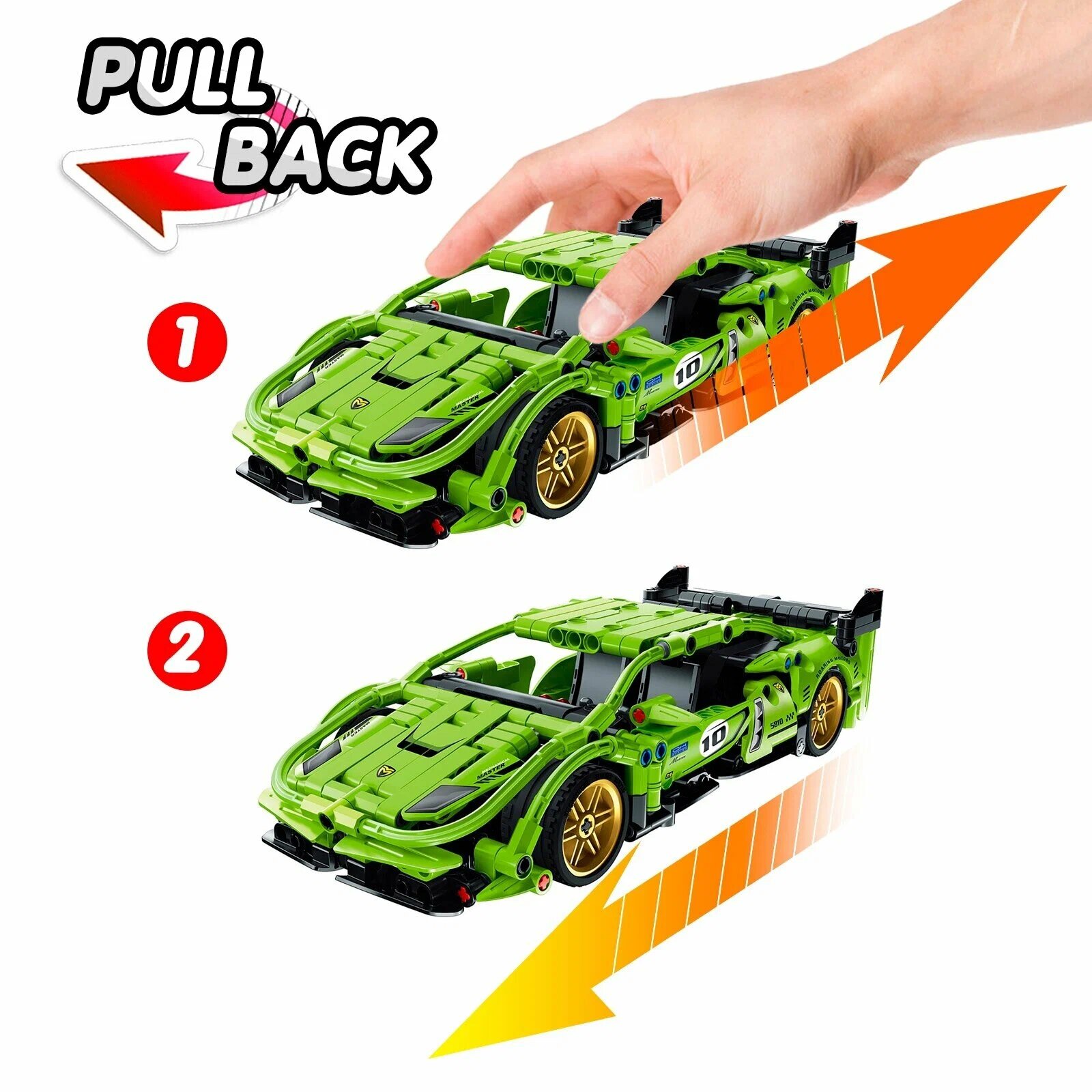 Конструктор пластиковый "Зелёный спорткар" машинка инерционная 457 деталей Артикул 5810IMM