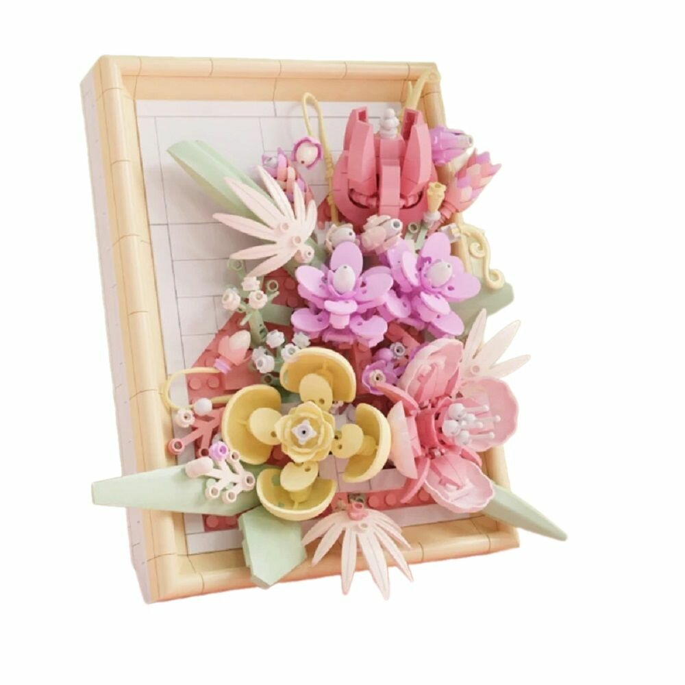 Детский конструктор 3д Цветы в рамке для девочки, 650 деталей