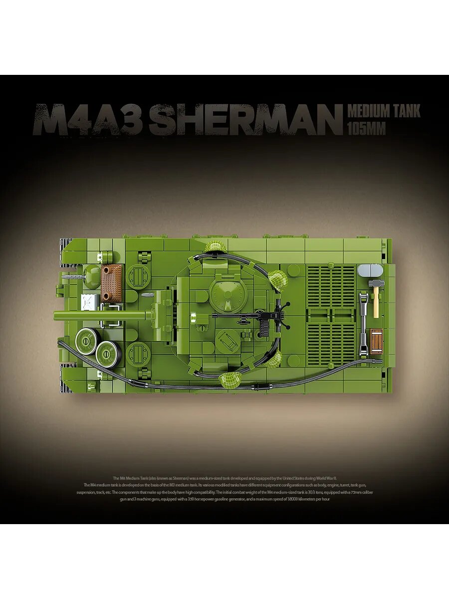 Конструктор Quan Guan "Средний танк M4A3 Sherman, США", 1175 деталей информация: