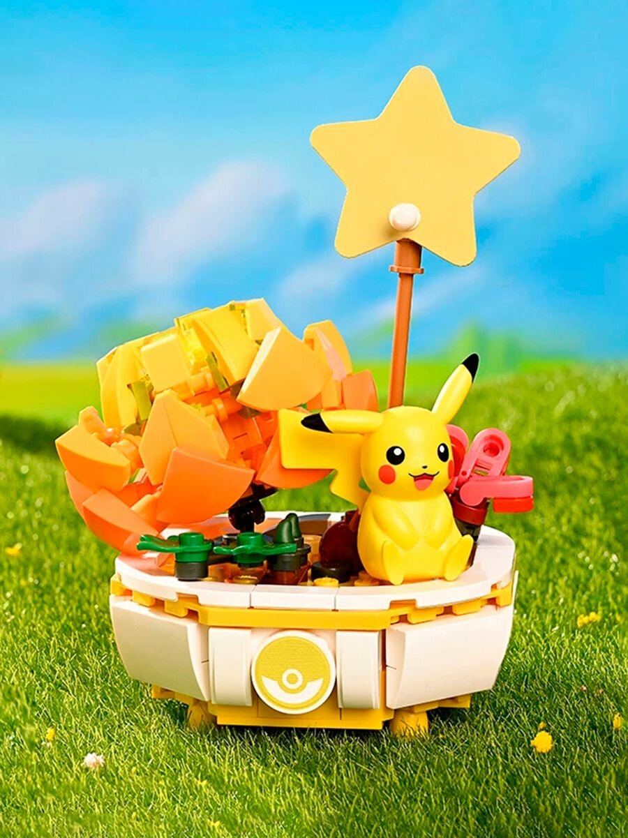 Конструктор из мини блоков - цветок с покемоном Пикачу информация: