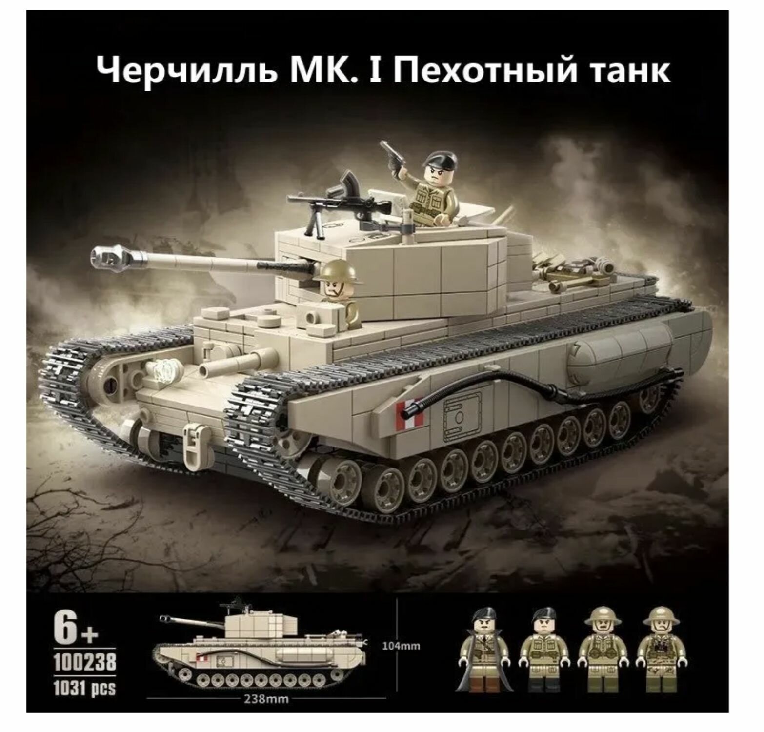 Конструктор военная техника "Великобританский танк Черчилль MK. I" 1031 деталь информация: