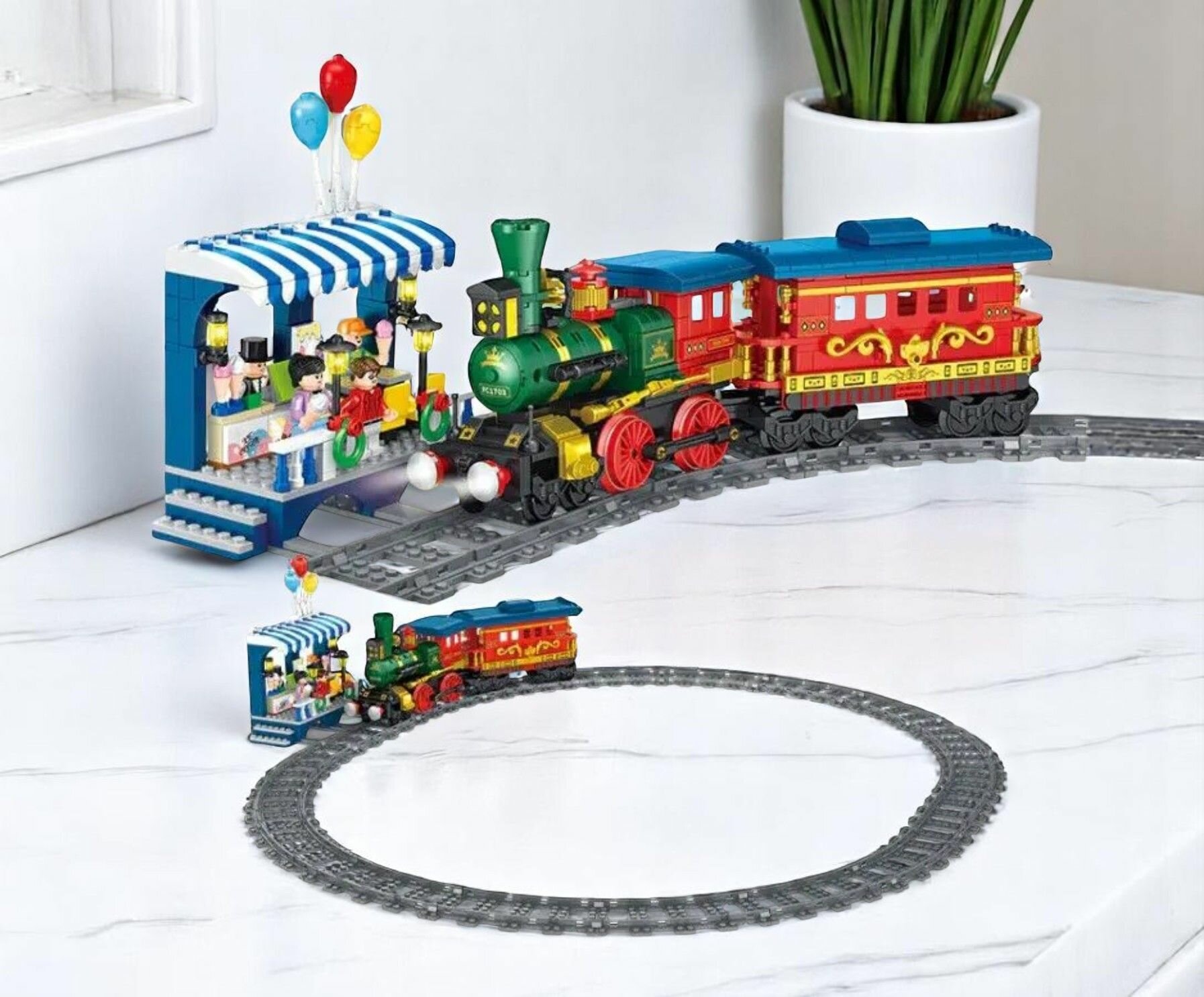 10 цен на Новогодний конструктор железная дорога с поездом и вагонами, сопоставим с лего 717 деталей