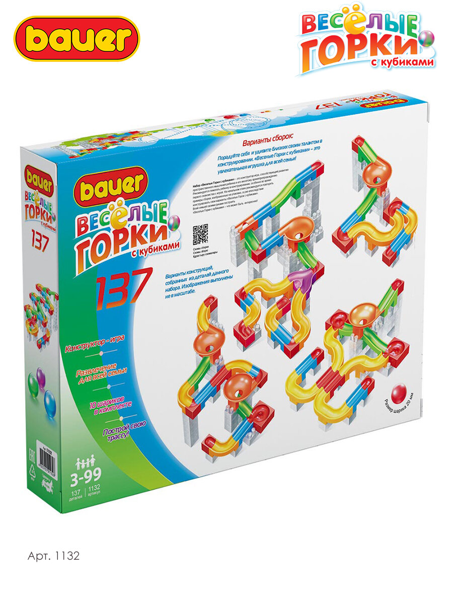 Развивающий конструктор Bauer "Веселые горки с кубиками", для детей от 3-х лет, 137 деталей, STEM информация: