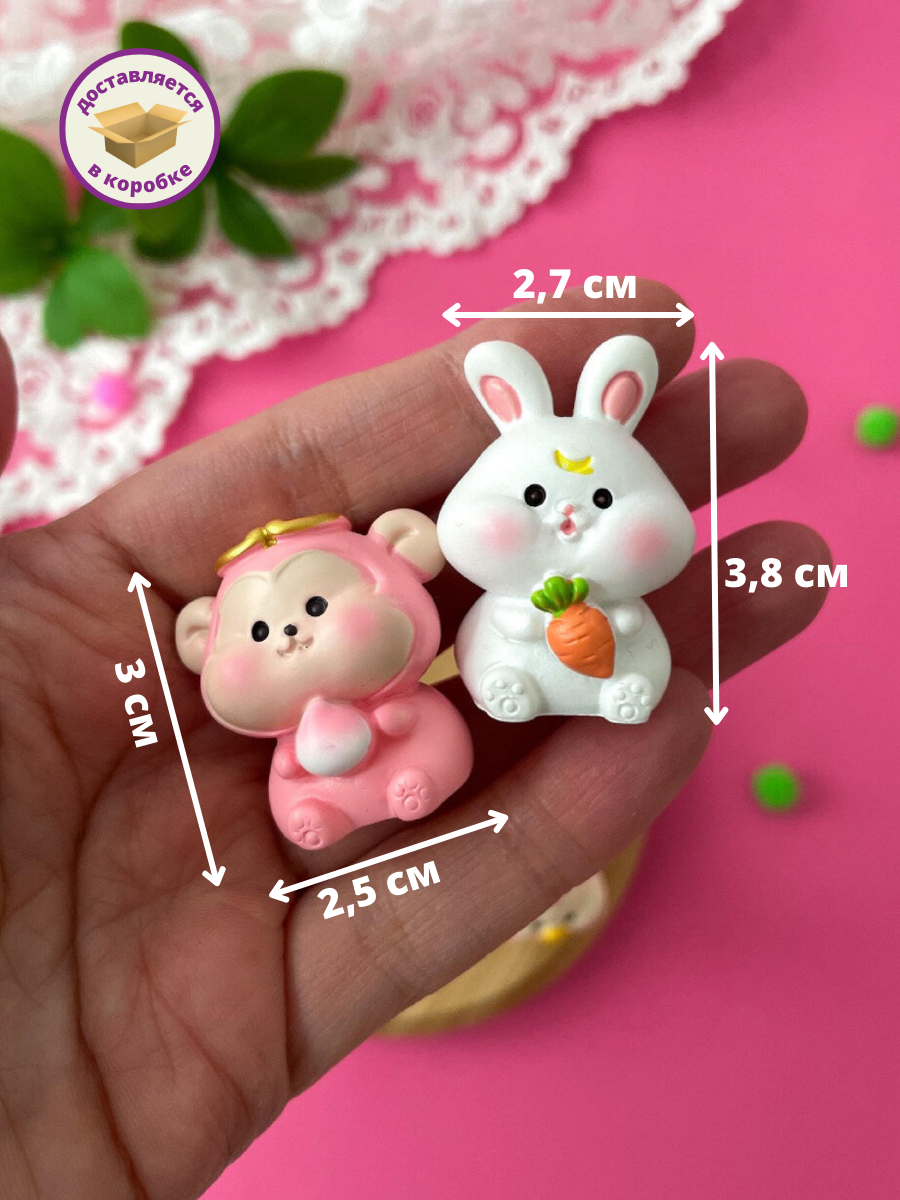 Зайка игрушка для куклы, кукольная миниатюра, Кремовый + Розовый цвет, набор 2 шт. 560 ₽