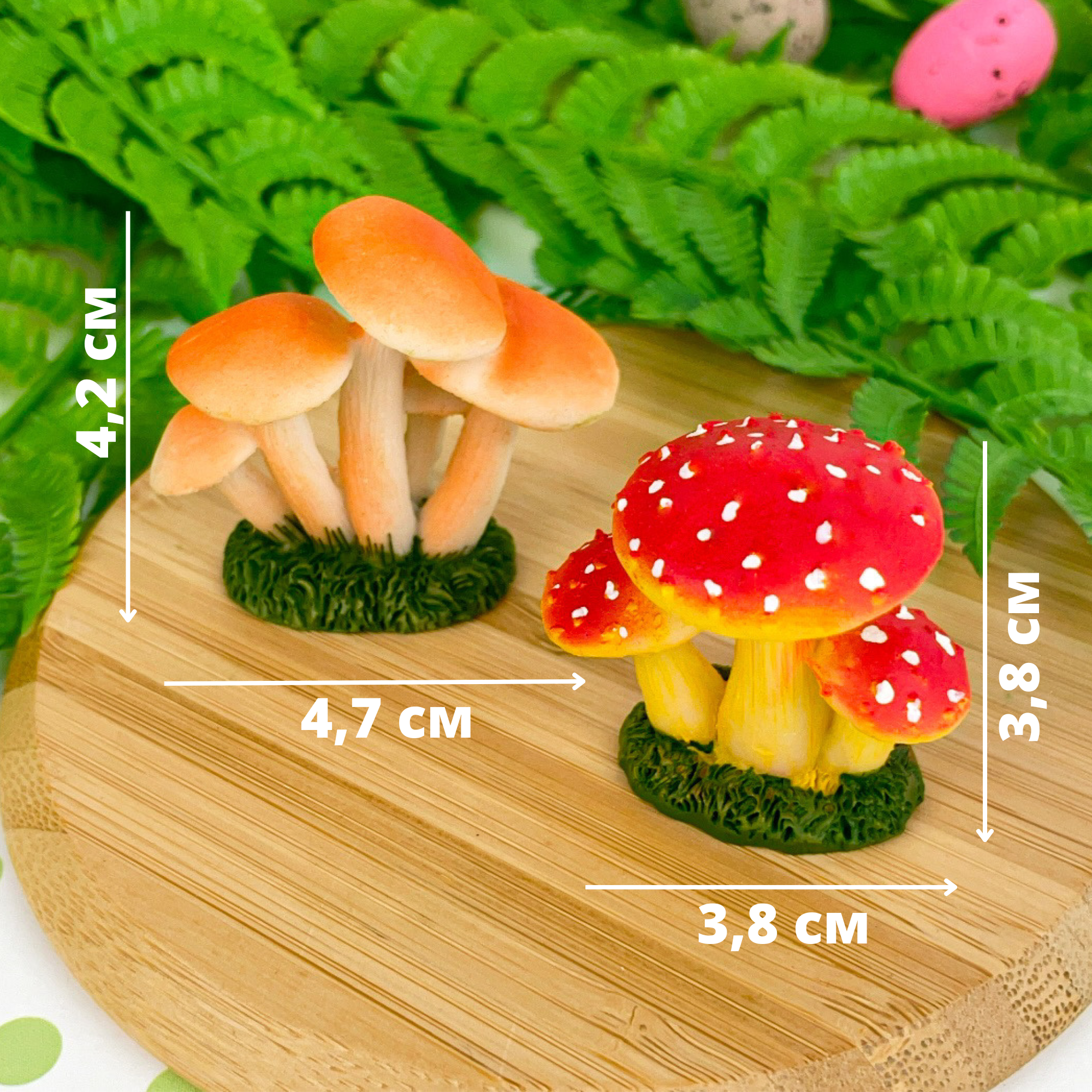 Фигурки для декора, грибы декоративные, опята и мухоморы, кукольная миниатюра, набор 2 шт. информация: