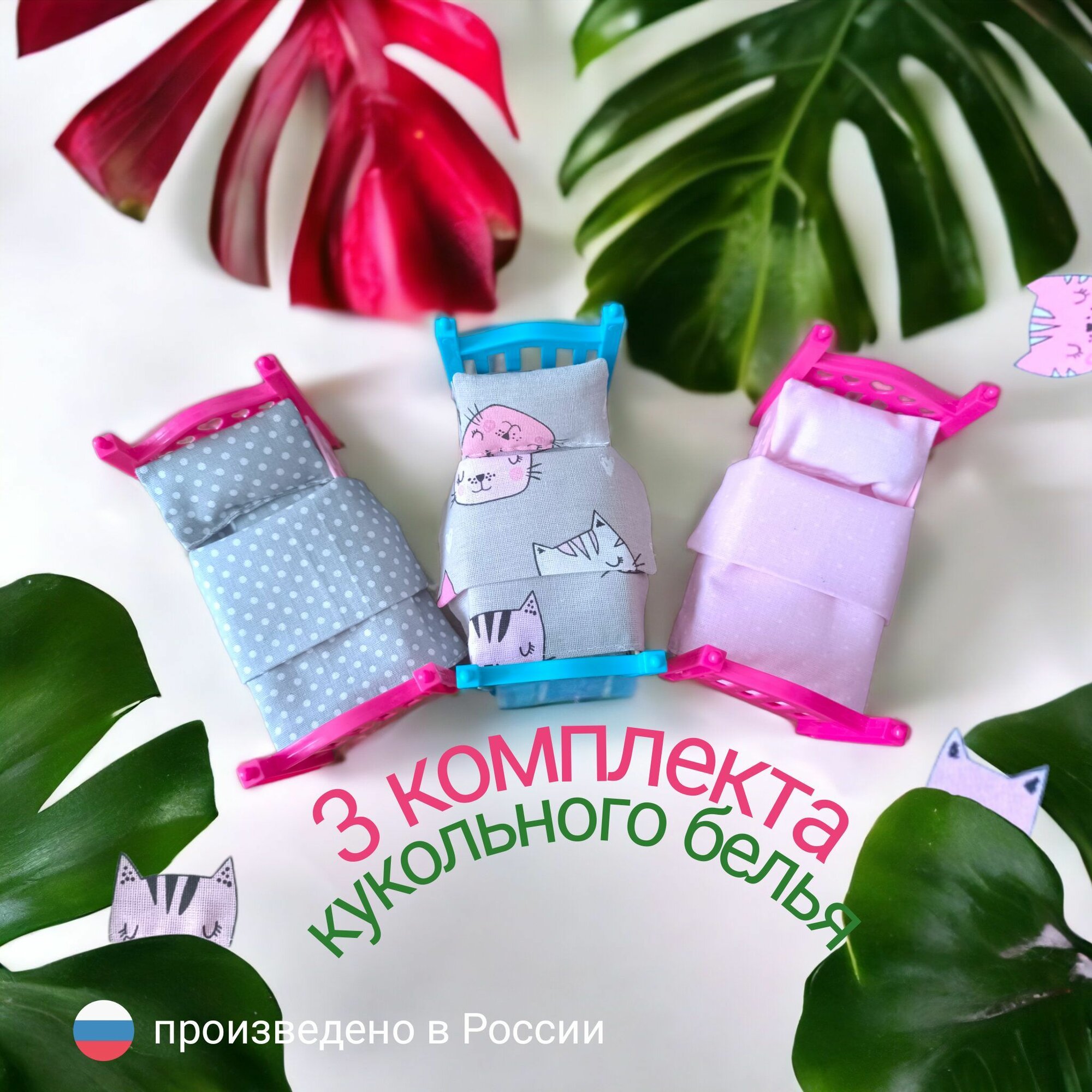 Постельное белье для маленьких кукол, 3 набора, кукольное белье Аленький 510 ₽