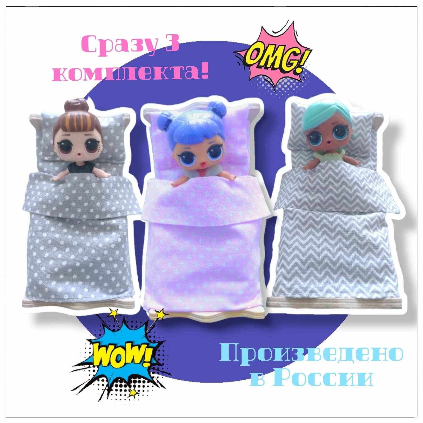 Постельное белье для маленьких кукол, 3 набора, кукольное белье Звездопад 510 ₽