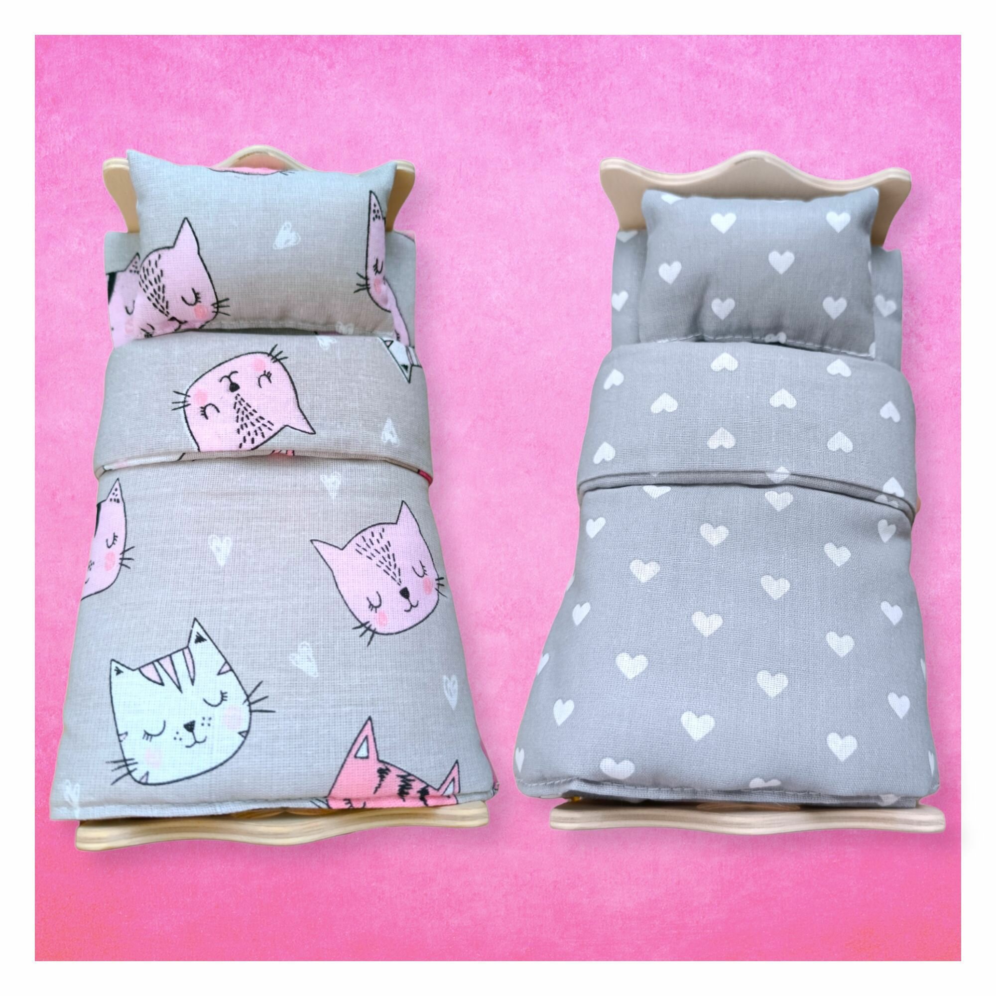 Два комплекта постельного белья для кукол Барби 30 см, Киса в розовом
